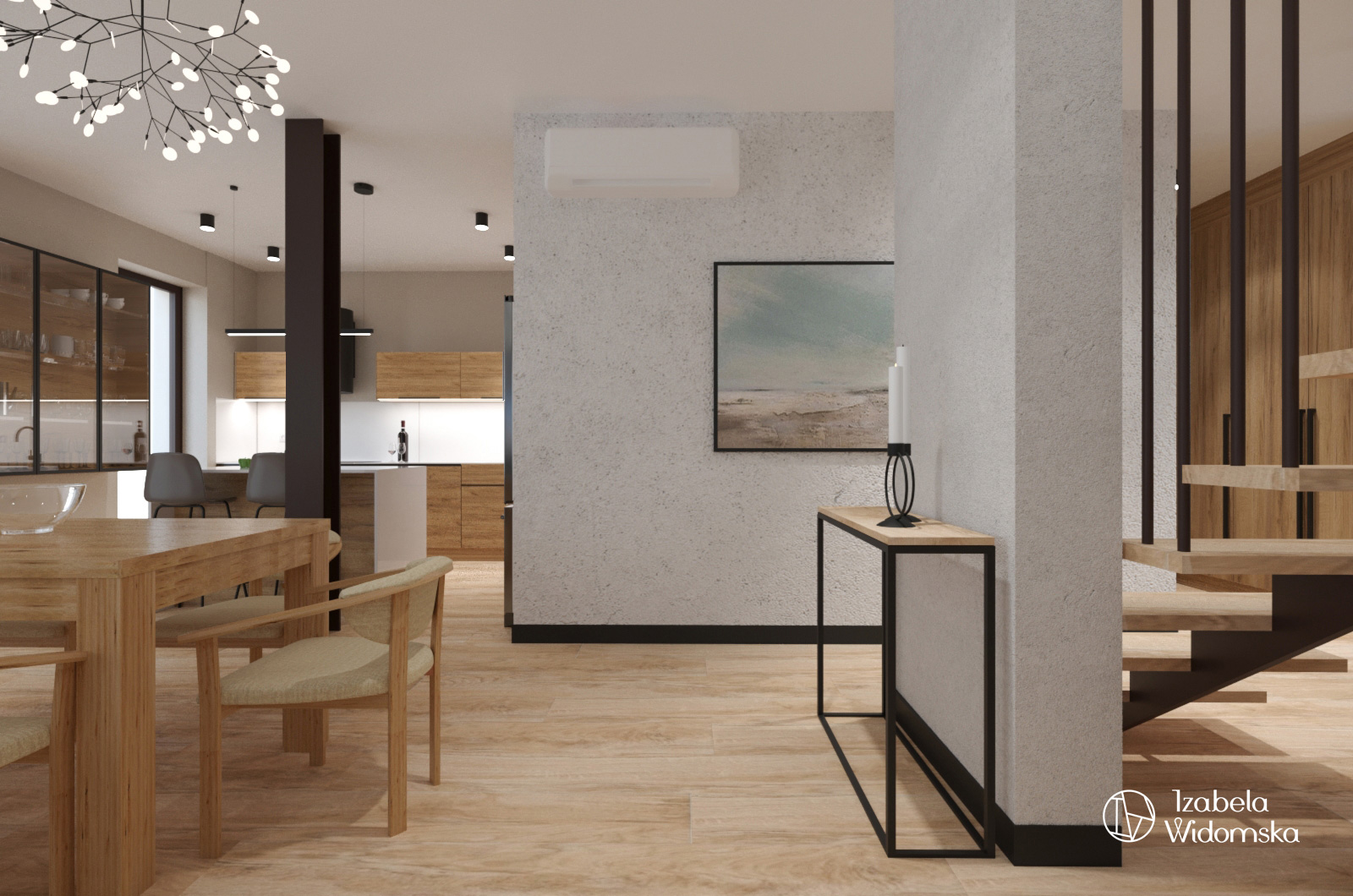 W tym projekcie wnętrz domu  projektantka wnętrz Warszawa zaproponowała jasne, rozłożyste i funkcjonalne wnętrze z elementami stylu skandynawskiego.