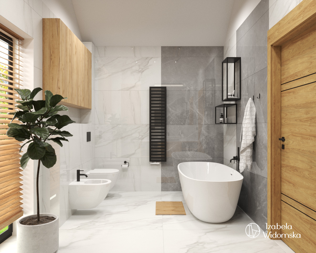 Projekt łazienek wpasował się a minimalistyczny styl, a ich przyjemna, ciepła kolorystyka idzie w parze  z funkcjonalnością i relaksem.