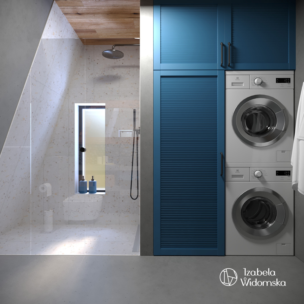 Praktycznym rozwiązaniem w tej aranżacji domku pod wynajem są podłogi wykonane z mikrocementu. Jest to bardzo odporna, łatwa w utrzymaniu i nowoczesna powierzchnia podłogowa.